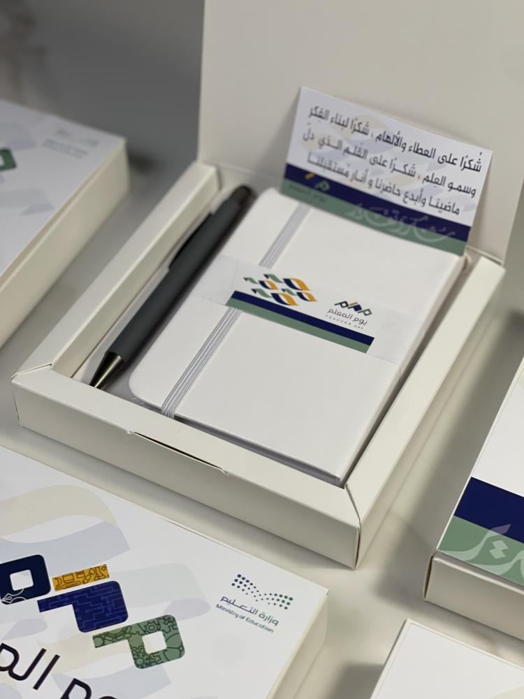 ابتكرنا هدية تليق بمكانة المعلمين وتناسب احتياجاتهم. تحتوي على دفتر ملاحظات عملي وقلم مبتكر يجمع بين الحبر السائل وخاصية اللمس للأجهزة الجوالات والأيباد. صُممت هذه المجموعة لتكون رفيقًا للمعلم في رحلته التعليمية. تأتي الهدية في علبة أنيقة يمكن تخصيصها بشعار المدرسة أو الشركة التعليمية، مما يجعلها تذكارًا فريدًا ليوم المعلم يحمل قيمة عاطفية ومعنوية.